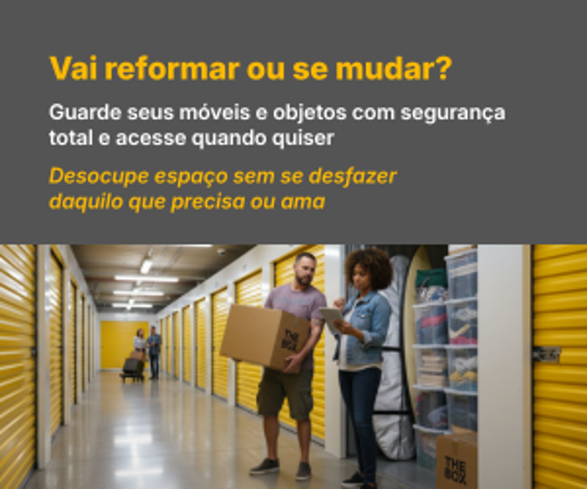 Reforma ou mudança tranquila e casa organizada. Guarde com segurança móveis, documentos, equipamentos esportivos e coleções, liberando espaço para o essencial.