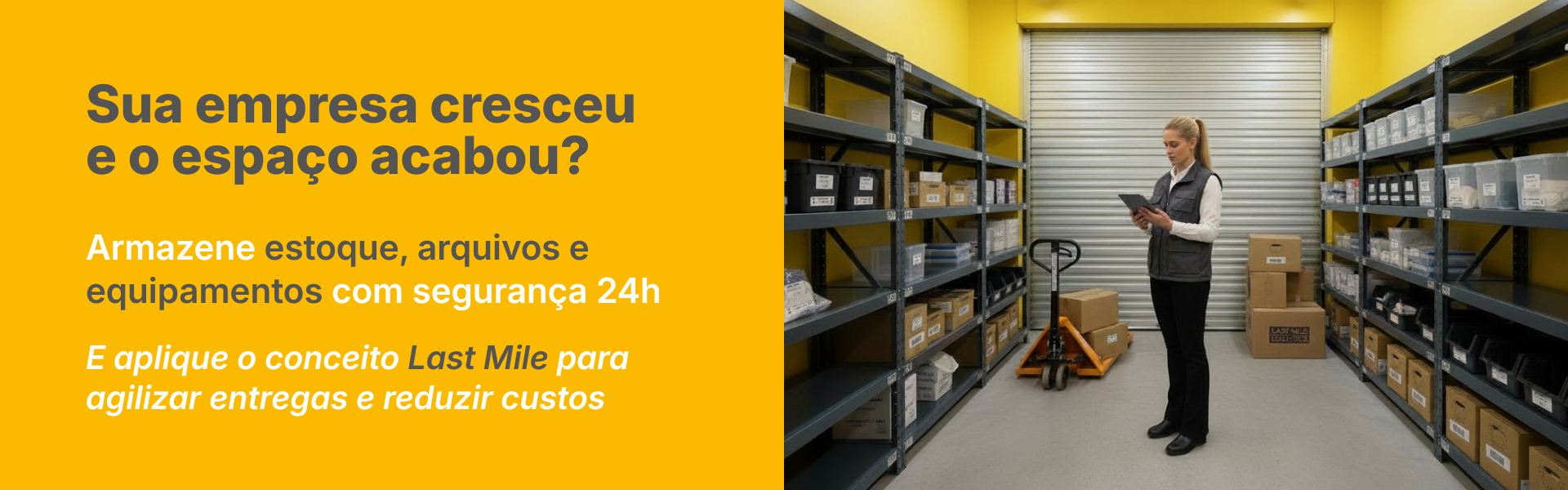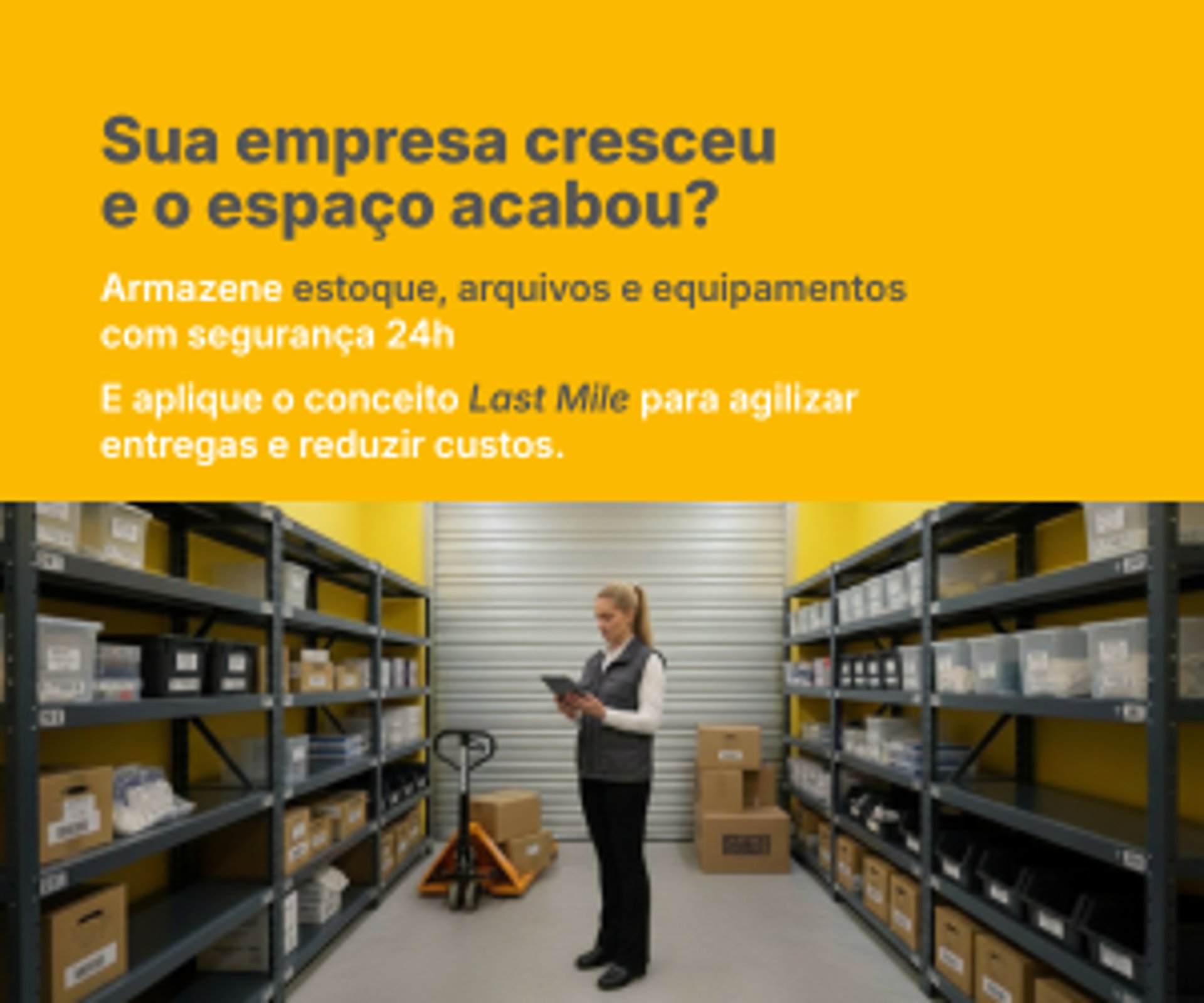 Armazene com inteligência seu estoque de produtos, material de PDV, ferramentas e o arquivo morto da sua empresa, tudo com a segurança e flexibilidade que você precisa.